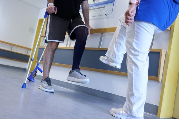 Innerhalb der ersten 6 Stunden nach Operation streben wir die Erstmobilisation an. Der Physiotherapeut steht Ihnen für Ihre ersten Schritte mit neuen Gelenk zur Seite.